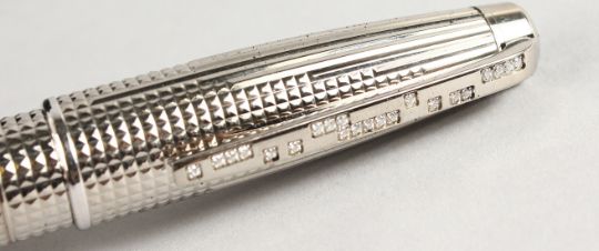 A GOOD DUPONT PALLADIUM AND DIAMOND SET FOUNTAIN PEN, boxed.