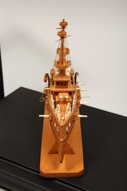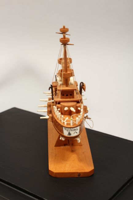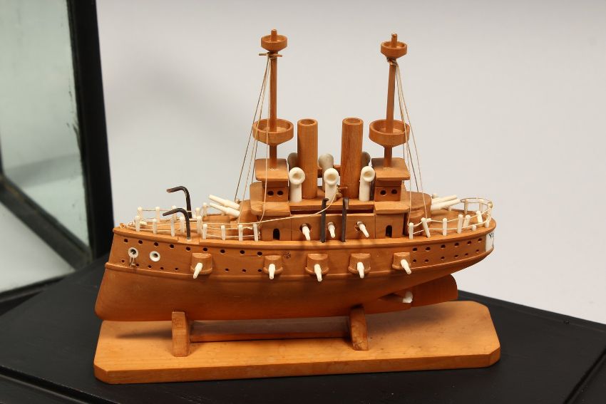A GOOD BOXWOOD AND BONE MODEL OF A JAPANESE WAR SHIP.