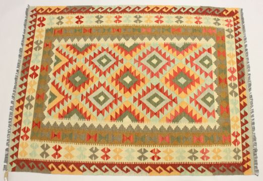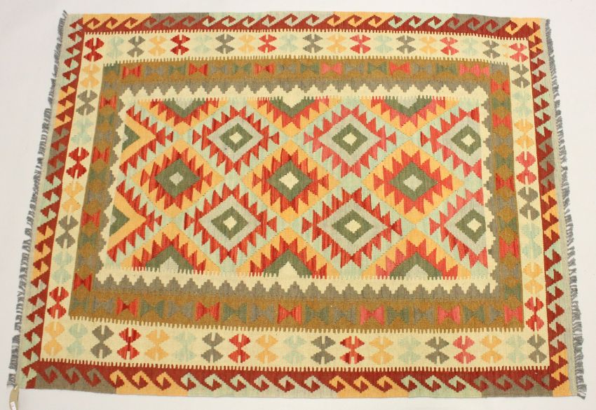 A CAUCASIAN DESIGN KEILIM CARPET of typical form with geometric decoration.