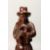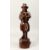 A CARVED WOOD FIGURE OF A MAN PLAYING A BLADDER PIPE.