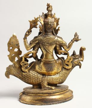 A GILT BRONZE DEITY OF A DRAGON inset with hardstones.