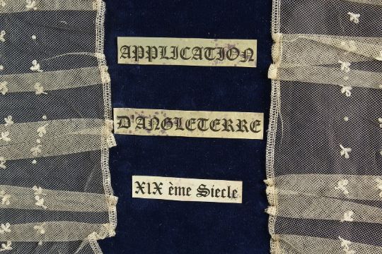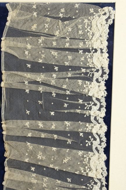 A VERY GOOD 19TH CENTURY WHITE LACE COLLAR, framed and glazed