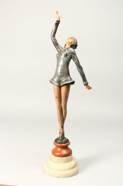 A BRONZE ART DECO GIRL on an onyx base