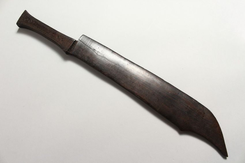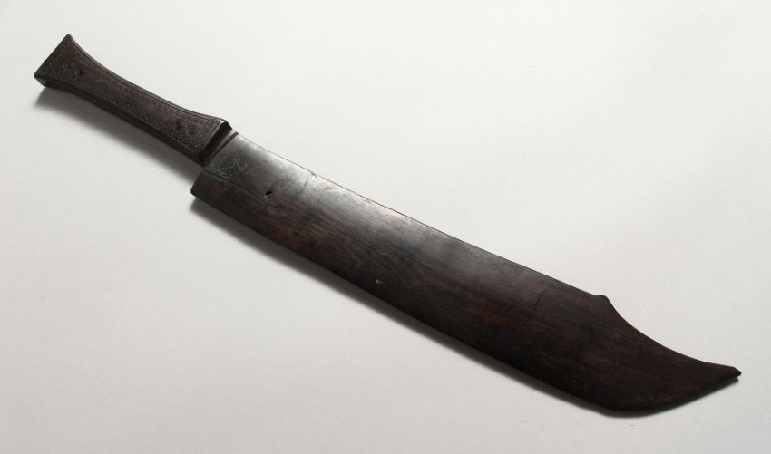 A CARVED WOOD MODEL OF A KNIFE