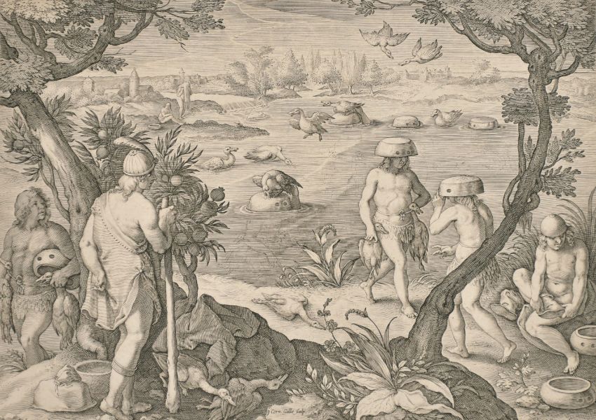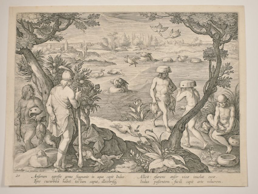 After Stradanus, 'Snaring Geese from Under Water', along with three other similar scenes, 8.5" x 11" (4).