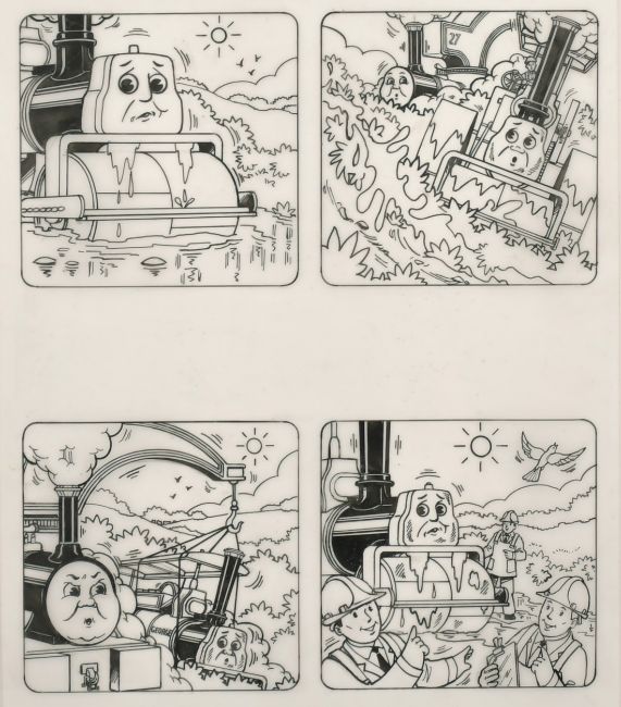 Tim Marwood (1954-2008) British, 'Thomas' No 470 'Stranded', 3, pen drawings, A group of 4 framed, inscribed, numbered and signed, 10" x 8".
