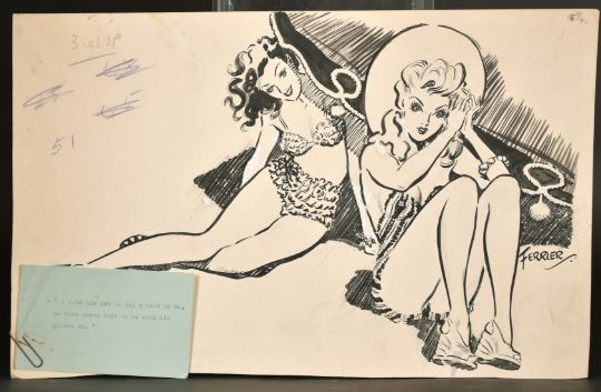 Arthur Ferrier (1891-1973) British, 'I told him not to lay a hand on me, he then makes love to me with his gloves on.', ink and bodycolour, signed, 10.5" x 16.5".