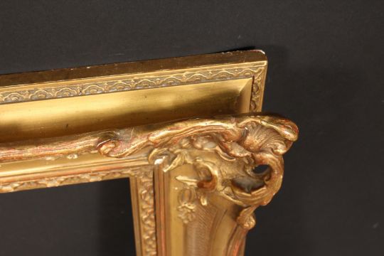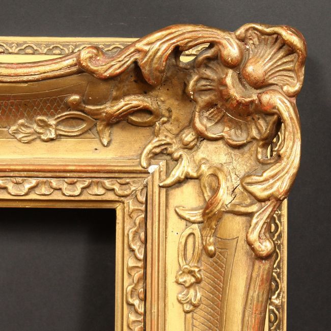 A 20th Century Continental gilt composition frame, rebate size - 12.5" x 20.5" (32 x 52cm).