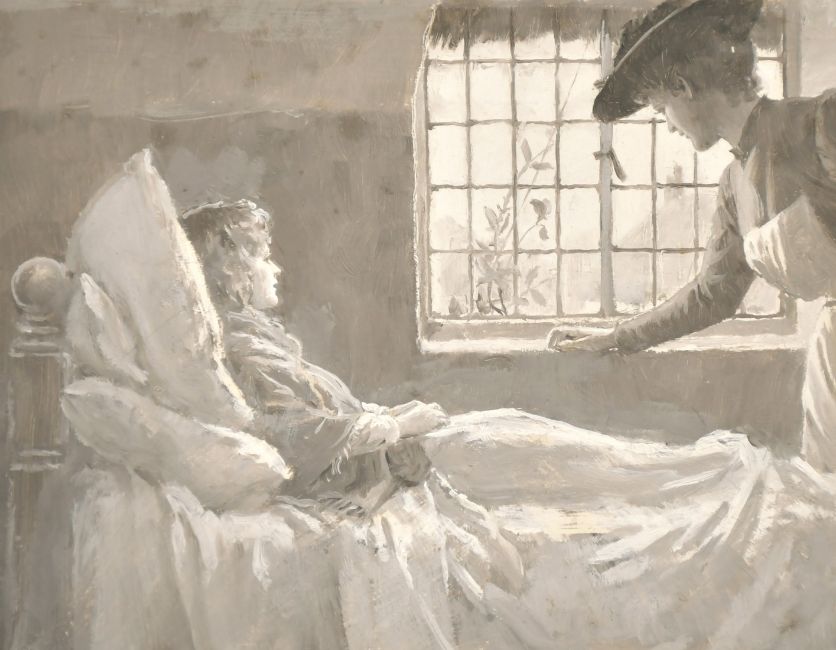 Percy Tarrant (1855-1934) British, 'The Pea Blossom', oil on board, 4.75" x 6", mounted but unframed.