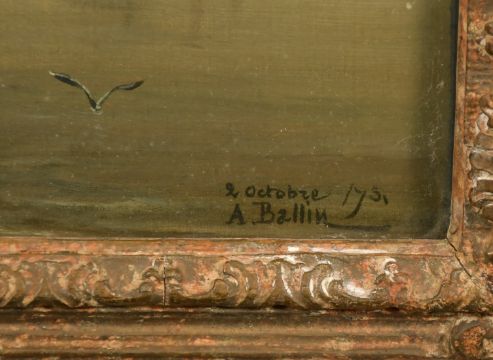 Auguste Ballin (1842-1885) French, Shipping on a River, oil on Canvas, signed and dated '2 Octobre '75', 12" x 18".