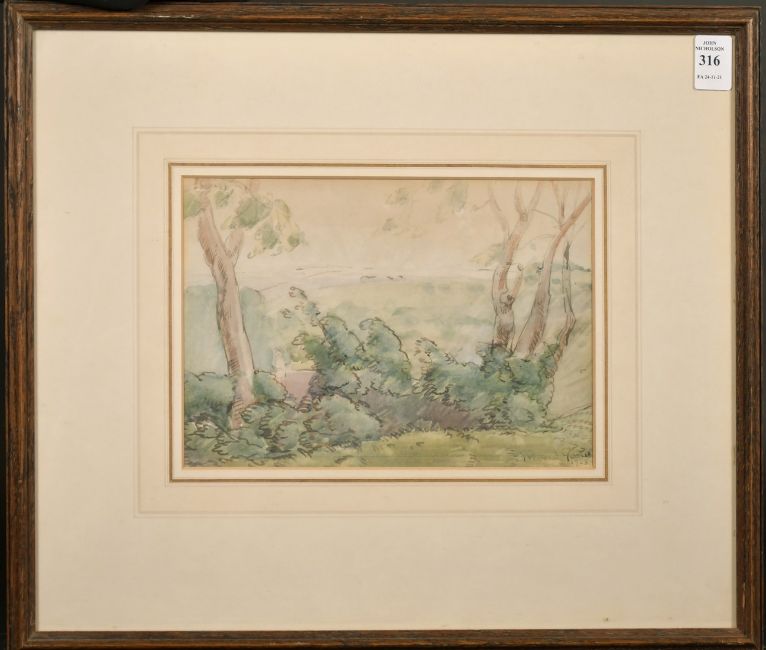 20th Century School, Landscape with trees, watercolour, indistinctly signed and dated '1923', 6.5" x 9.25".