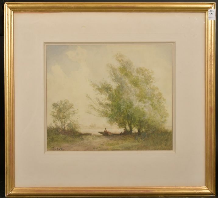 William Tatton Winter (1855-1928), 'Under the Trees', Figures in a boat by a river, watercolour, signed, 12" x 15", Provenance: The Museum Galleries.