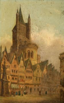 19th Century German School, a view of the city of Koln, Germany, oil on oak panel, 7.5" x 5".