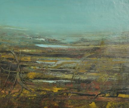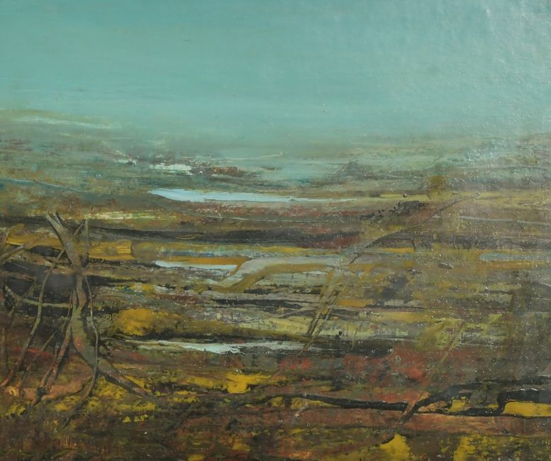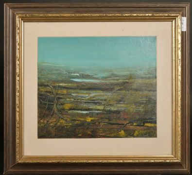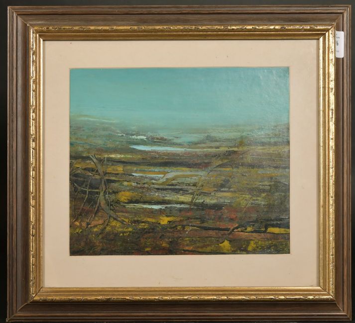 20th Century School, Stylized landscape, oil on card, signed Pitie, 8.5" x 10.25",