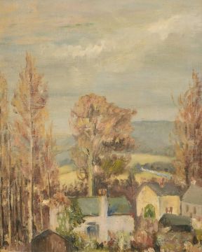 Early 20th Century, Village landscape, oil on canvas, 20" x 16".