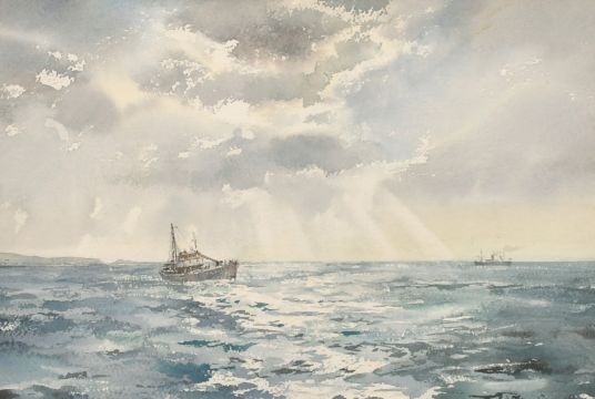 Ashton Cannell (1927-1994) Fishing boats on open water, watercolour, signed, 9.25" x 14".