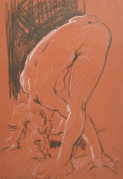 Alison Milner-Gulland (b.1940) A nude lady bending, chalk and crayon, signed in pencil, 16.5" x 12".