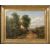 19th Century English School, figures and sheep by a cottage gate with open fields and a church beyond, oil on canvas, indistinctly signed, 15" x 21".