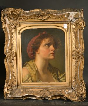 19th Century, Head study of a female figure looking up, oil on canvas, 16.25" x 13".
