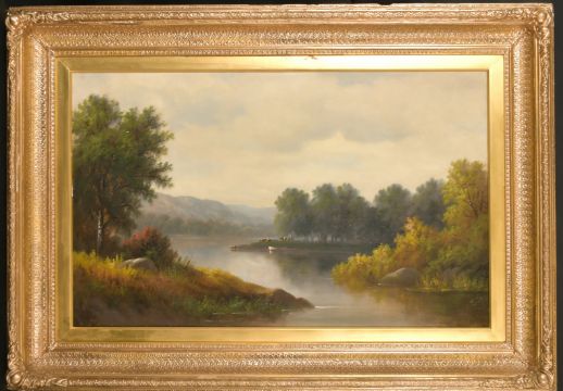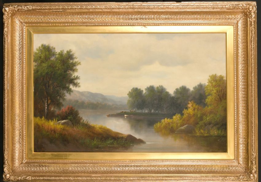 HFR? (1887?) 'Lake scene with Cattle', oil on canvas, initialled HRF, 22.25" x 36".