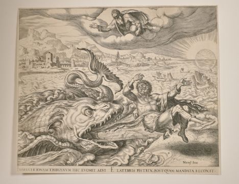 Philips Galle after Van Heenskerk, 'Jonah Cast Ashore by the Whale', and another engraving after Van Cleeve, 7" x 9.75" (2).