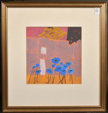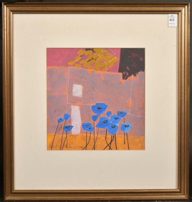 Alastair Michie (1921-2008) Scottish, blue flowers in a field, acrylic, signed and dated 1983, 10" x 10".