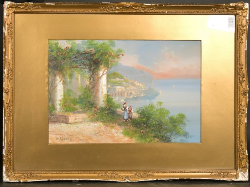 Yves Gianni (19th/20th Century) Italian, Evening on the Amalfi Coast, gouache, 12" x 19".
