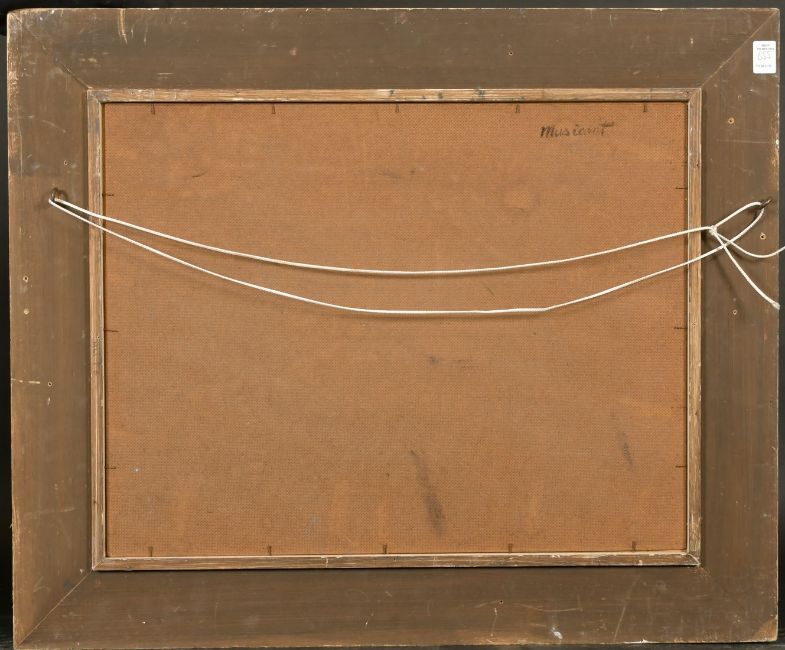 20th Century School, a composition of abstract figures, oil on board, inscribed 'Musicant' verso, 17" x 22".