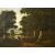 19th Century English School, figures on a cart and horses coming into a clearing, oil on mahogany panel, 12" x 16".