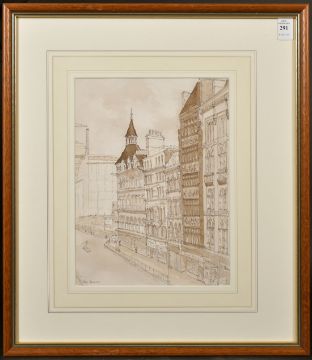 Hugh Cantlie (20th Century) British, A street view of The Poultry, watercolour, signed with monogram, 12" x 9".