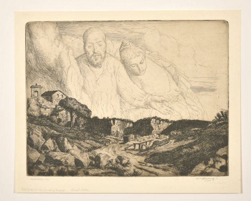 William Strang (1859-1921) British, 'At the Back of Beyond', 7" x 9", along with two further etchings by the same hand, all signed by William Strang and David Strang, (3).