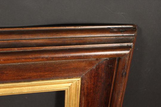 A Continental polished hardwood frame with gilded slip, rebate size - 29.75" x 40" (76 x 101.5cm).