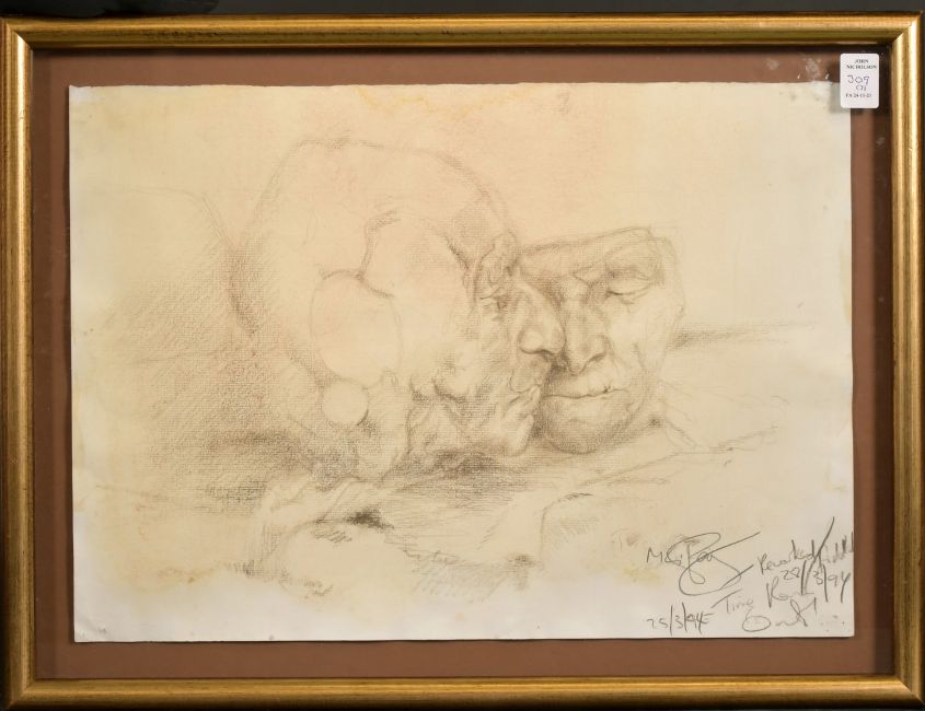 Michael Rainey (b. 1970) A set of three head studies of elderly figures, mixed media, each signed and dated and annotated, each approximately 12" x 17", (3).