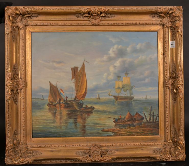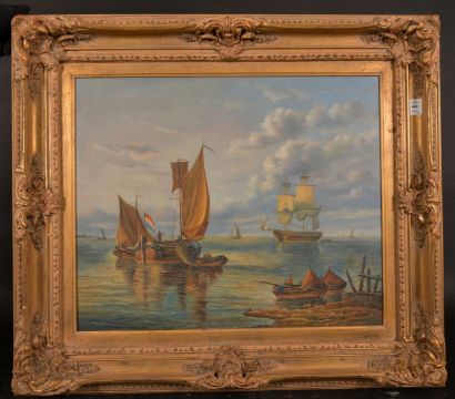 20th Century School, a pair of oil on canvas scenes of barges and other shipping, each 20" x 24", (2).