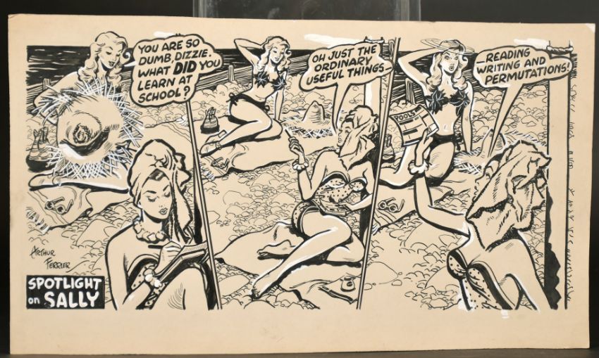 Arthur Ferrier (1891-1973) British, 'You are so dumb, Dizzie, what did you learn at school?', a spotlight on Sally cartoon, ink and bodycolour, signed, 9.5" x 16.25".