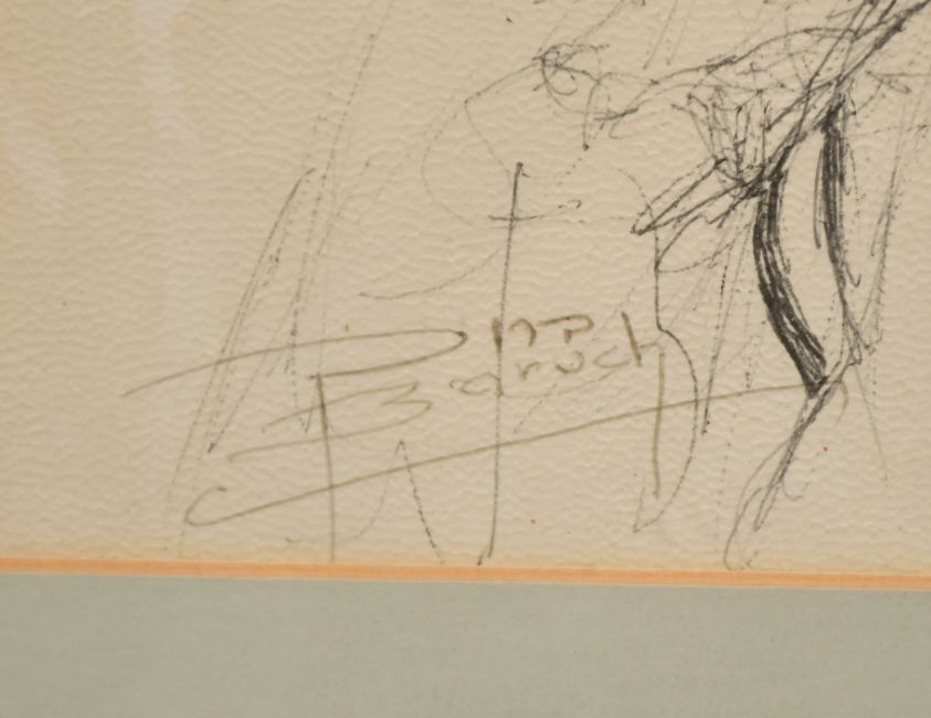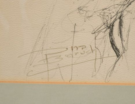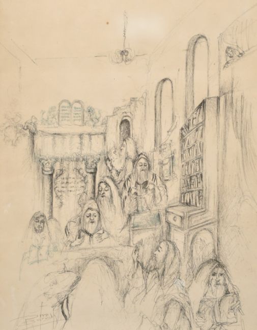 Baruch, A scene of elders reading manuscripts in a place of worship, mixed media, signed, 17" x 13".