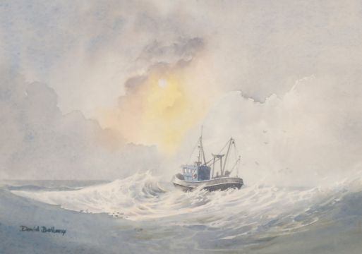 David Bellamy (20th Century) 'Trawler off St. Ann's Head', watercolour, signed, 7.5" x 11.25".