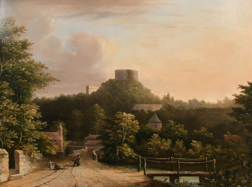 19th Century English School, 'A view of Windsor Castle from Stanwell Moor', oil on board, indistinctly inscribed verso, 14" x 18", in a Maple frame.