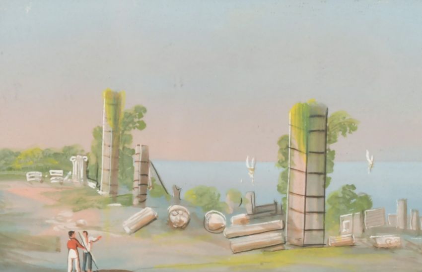 Ciro Denza (19th Century) Italy, a pair of gouache views of scenes around Selinunte, Sicily, one signed, 4.75" x 6.75".