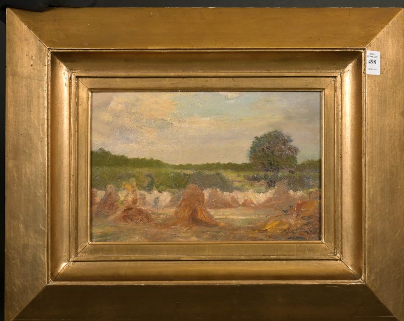 Early 20th Century School, Hay stooks, oil on board, 8" x 12".