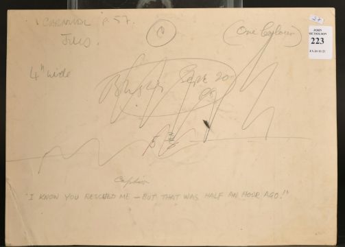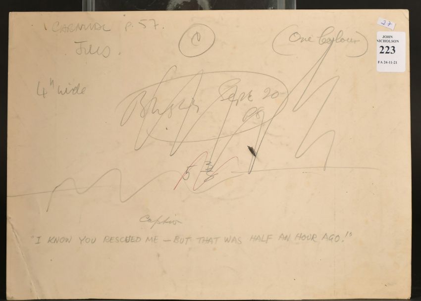 Arthur Ferrier (1891-1973) British, 'I know you rescued me-but that was half an hour ago!', ink, bodycolour and blue crayon, signed and titled verso, 8.75" x 12".