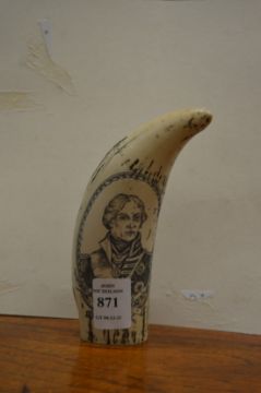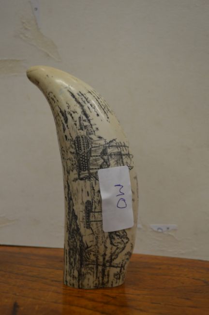 A reproduction scrimshaw tooth.