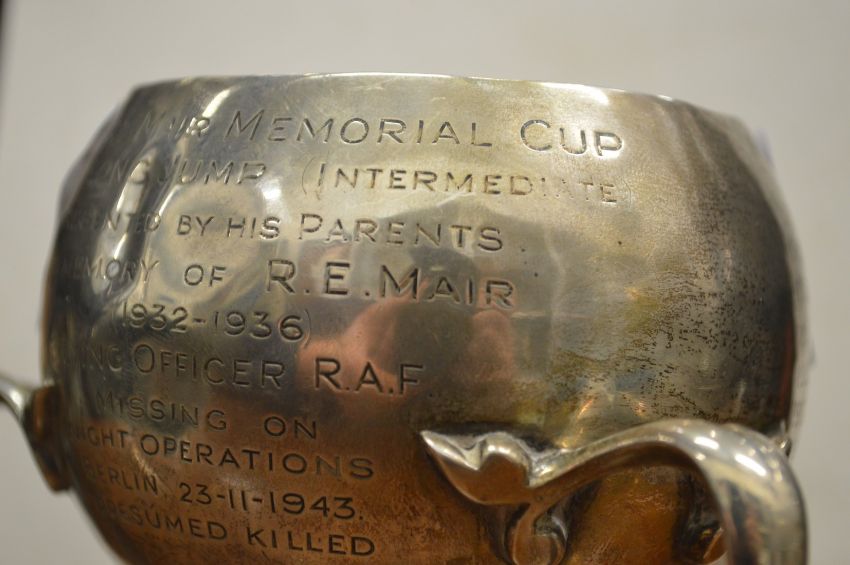 An Art Nouveau silver three handled pedestal trophy cup.