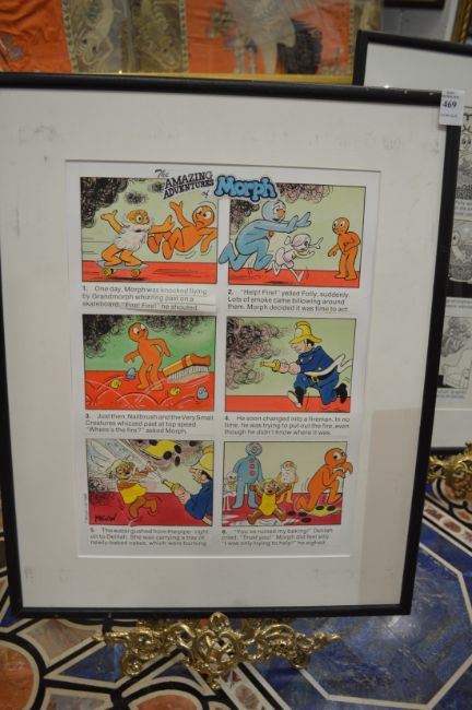 Bill Mevin "The Amazing Adventures of Morph" six hand-coloured original illustrations, framed as one.