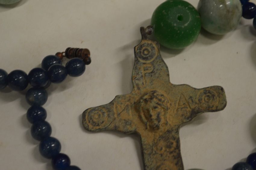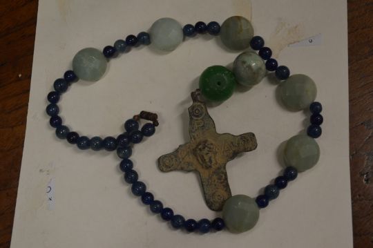 A Roman bronze cross on a bead necklace.