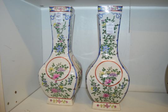 A pair of Chinese Famille Rose square shaped baluster vases.