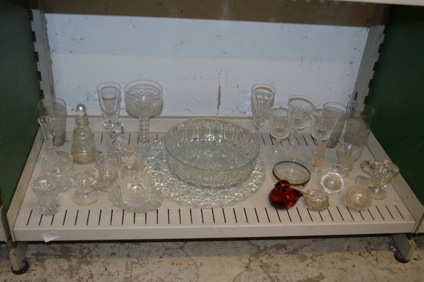 Two shelves of glassware.