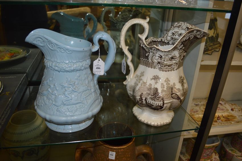 Two large decorative jugs.