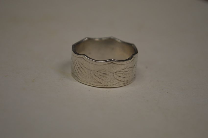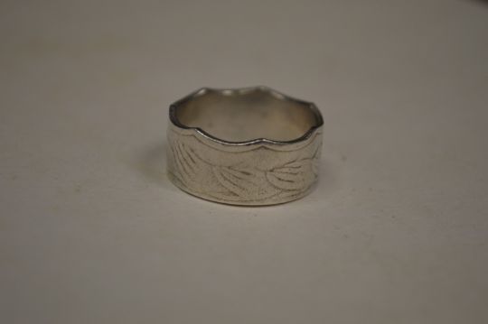 An unusual ring made from a 50p piece, size Y1/2 (made by Mick Griffiths).