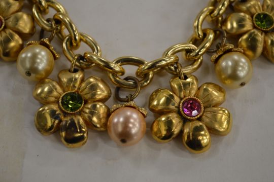 A designer necklace with flower head motifs.